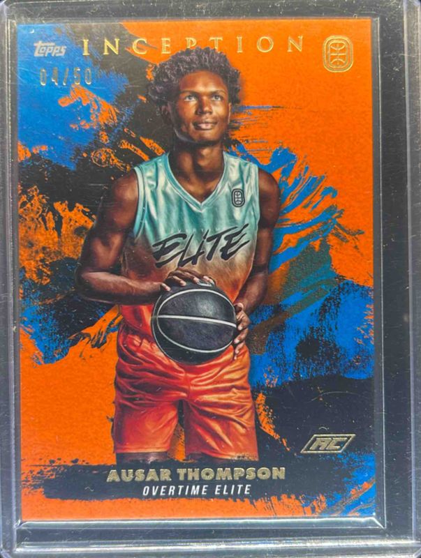 The Ausar Thompson 2021 Topps Inception OTE Overtime Elite #48 Orange /50 card is 1 of 113 Ausar Thompson's card variations in the 2021 Topps Inception OTE Overtime Elite set being tracked by Sports Card Investor, including #1 Base, #21 Base, #48 Base, #57 Base, and #48 Blue /199.