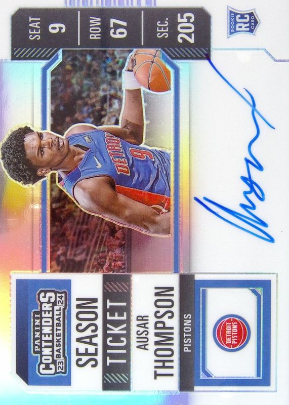 This card is 1 of 28 Ausar Thompson's card variations in the 2023 Contenders set being tracked by Sports Card Investor, including Rookie Ticket Auto, Rookie Ticket Auto - Premium, Rookie Ticket Auto - Premium Green Shimmer, Rookie Ticket Auto - Ticket Stub (/9), and Rookie Ticket Auto Variation.