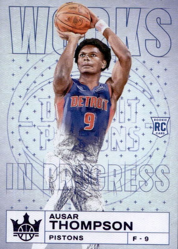 The Ausar Thompson 2023 Court Kings #4 Works in Progress - Violet /49 Rookie card in Raw condition has not changed in price in the last 30 days and was last sold for $16.00 .