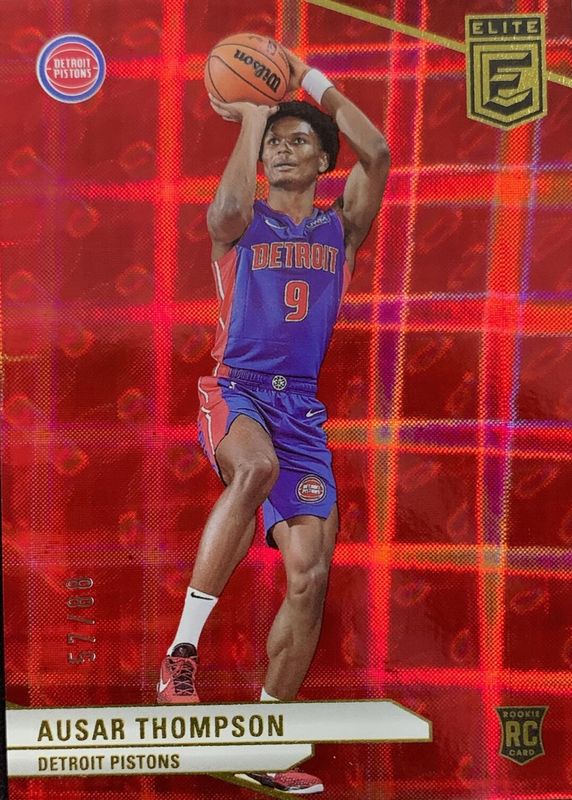 The Ausar Thompson 2023 Elite #218 International Hyper Red /88 Rookie card in Raw condition has not changed in price in the last 30 days and was last sold for $15.00 .