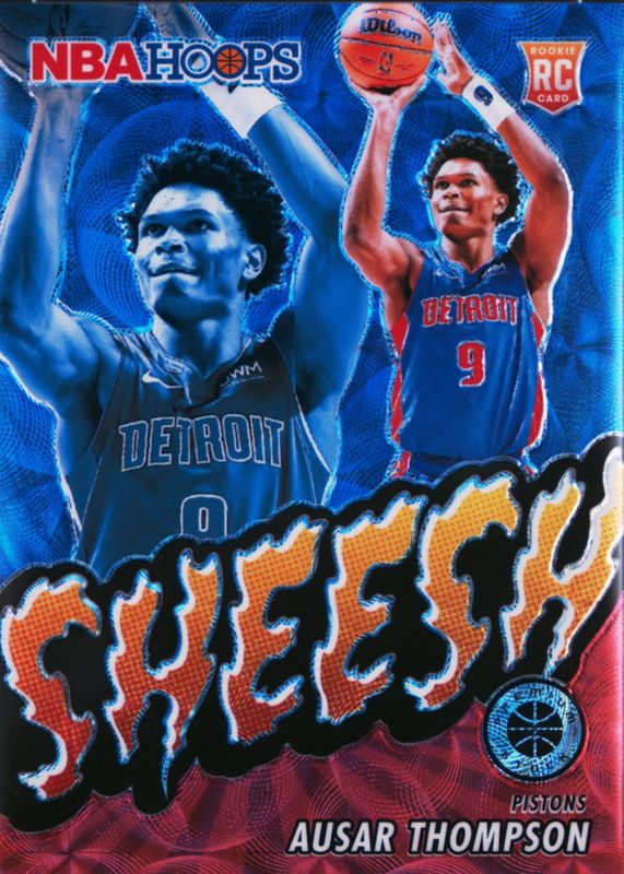The Ausar Thompson 2023 Hoops Premium Stock #24 Sheesh - Premium Red /88 Rookie card in Raw condition has not changed in price in the last 30 days and was last sold for $16.00 .