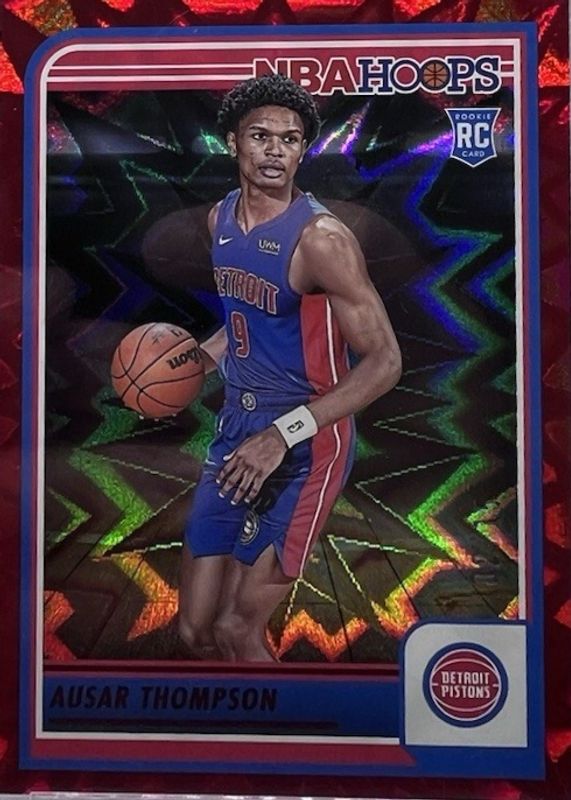 The Ausar Thompson 2023 Hoops #255 Red Explosion /15 Rookie card in Raw condition has not changed in price in the last 30 days and was last sold for $52.00 .