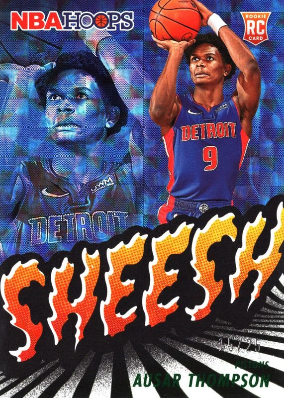 The Ausar Thompson 2023 Hoops #14 Sheesh - Hyper Green /25 Rookie card in Raw condition has not changed in price in the last 30 days and was last sold for $11.25 .