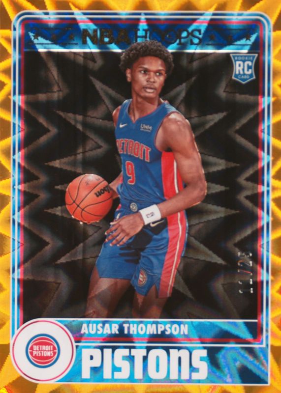 The Ausar Thompson 2023 Hoops #293 Tribute - Orange Explosion /25 Rookie card in Raw condition has not changed in price in the last 30 days and was last sold for $30.00 .