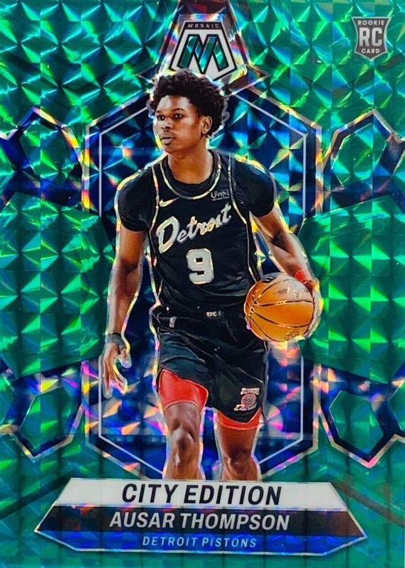 The Ausar Thompson 2023 Mosaic #290 City Edition - Green Rookie card in Raw condition has moved up $1.16 (+117%) in the last 30 days and was last sold for $2.15 .