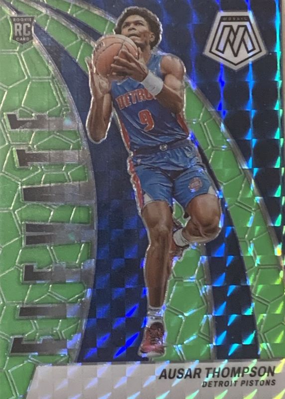 The Ausar Thompson 2023 Mosaic #10 Elevate - Green Fluorescent /10 Rookie card in Raw condition has not changed in price in the last 30 days and was last sold for $60.00 .