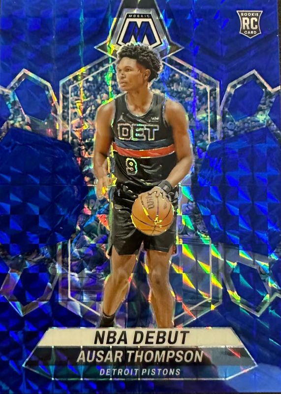 The Ausar Thompson 2023 Mosaic #262 NBA Debut - Blue /199 Rookie card in Raw condition has not changed in price in the last 30 days and was last sold for $7.62 .
