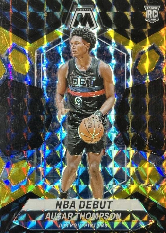 The Ausar Thompson 2023 Mosaic #262 NBA Debut - Choice Black Gold /8 Rookie card in Raw condition has not changed in price in the last 30 days and was last sold for $125.50 .