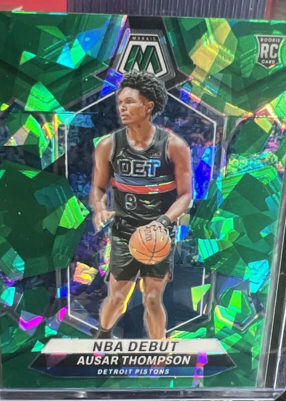 The Ausar Thompson 2023 Mosaic #262 NBA Debut - Green Ice Rookie card in Raw condition has not changed in price in the last 30 days and was last sold for $0.99 .