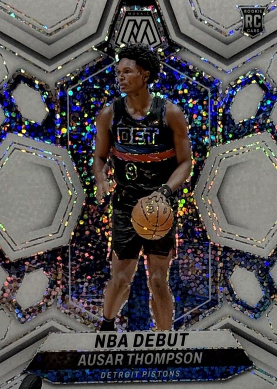 The Ausar Thompson 2023 Mosaic #262 NBA Debut - White Sparkle /(SSP) Rookie card in Raw condition has not changed in price in the last 30 days and was last sold for $37.00 .