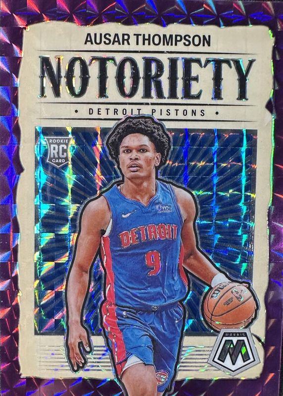 2023-24 Panini Mosaic Notoriety Purple Prizm /99 Ausar Thompson #1 Rookie RC