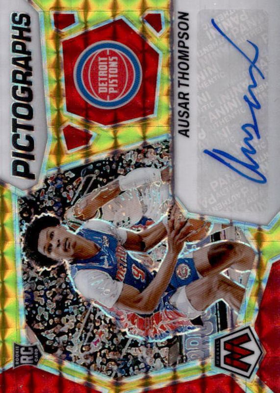 The Ausar Thompson 2023 Mosaic #PM-ASR Pictographs Autographs - Choice Rookie card in Raw condition has not changed in price in the last 30 days and was last sold for $30.00 .