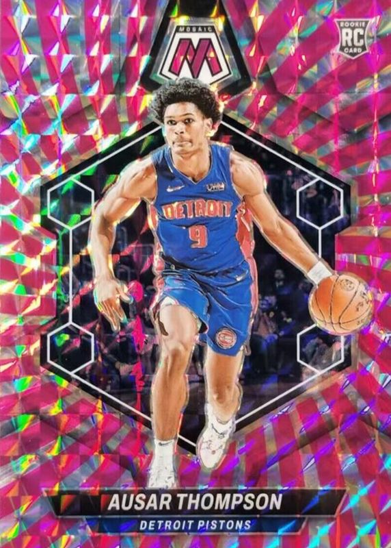 The Ausar Thompson 2023 Mosaic #226 Pink Swirl /18 Rookie card in Raw condition has not changed in price in the last 30 days and was last sold for $25.25 .