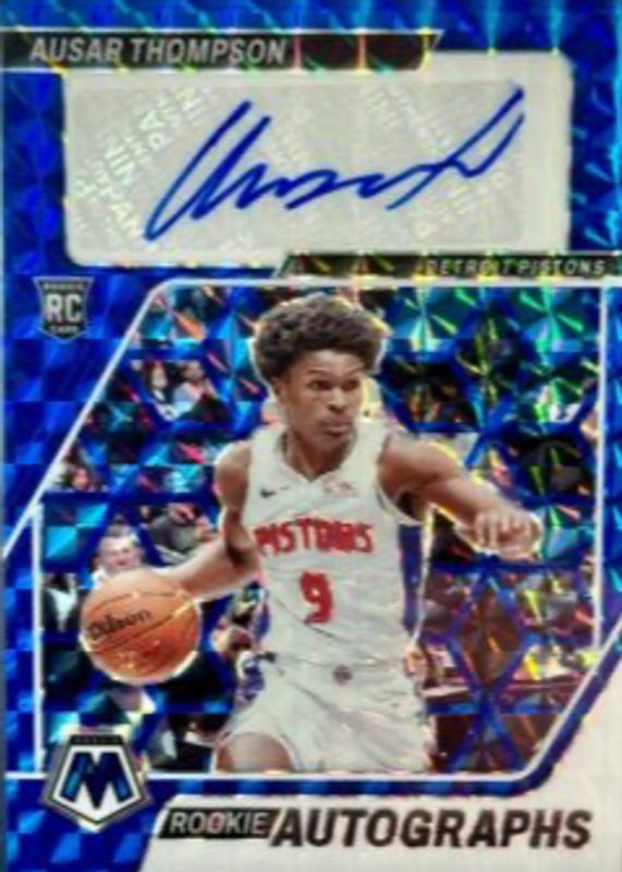 The Ausar Thompson 2023 Mosaic #RA-ASR Rookie Autographs - Blue /49 card in Raw condition has not changed in price in the last 30 days and was last sold for $33.00 .