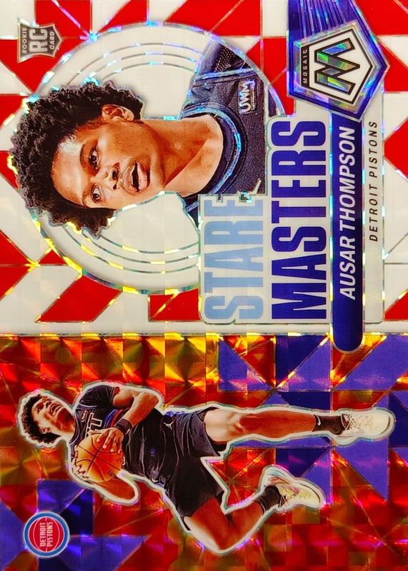 The Ausar Thompson 2023 Mosaic #2 Stare Masters - White /25 Rookie card in Raw condition has not changed in price in the last 30 days and was last sold for $18.00 .