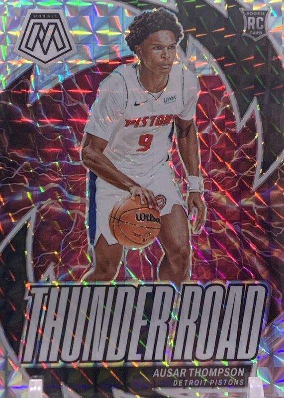 2023-24 Panini Mosaic Ausar Thompson RC Silver Rookie Prizm Thunder Road Pistons