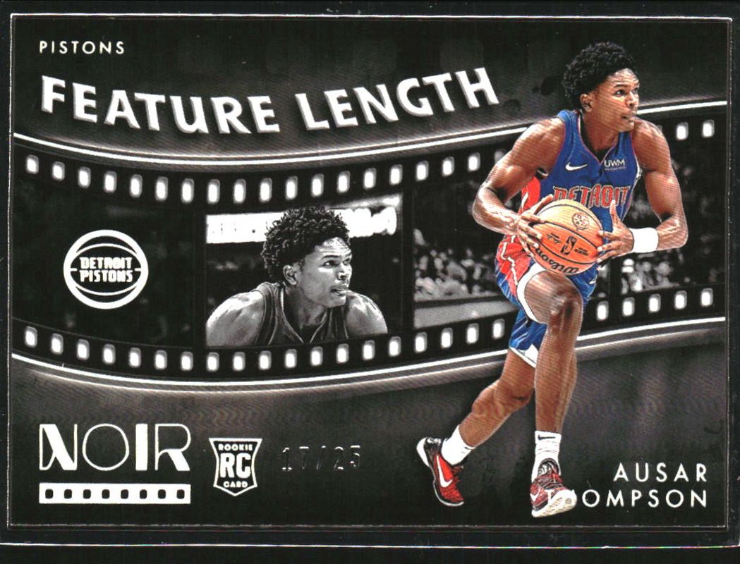 The Ausar Thompson 2023 Noir #269 Base /99 Rookie card is 1 of 84 Ausar Thompson's card variations in the 2023 Noir set being tracked by Sports Card Investor, including #352 Base /99, #312 Base /99, #239 Base /99, #183 Base /99, and #153 Base /99.