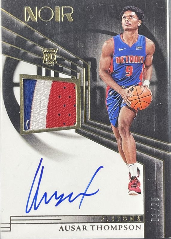 The Ausar Thompson 2023 Noir #352 Rookie Patch Auto Color - Prime /25 card in Raw condition has not changed in price in the last 30 days and was last sold for $190.50 .