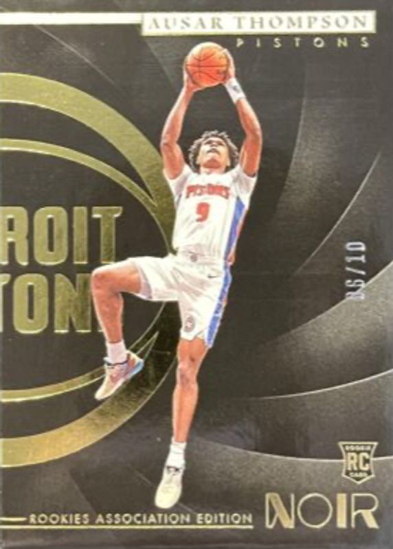 This card is 1 of 25 Ausar Thompson's card variations in the 2023 Noir set being tracked by Sports Card Investor, including Rookies Association Edition /99, Rookies Icon Edition /99, Feature Length /25, Rookies Metal Frame City Edition /25, and Rookies Association Edition - Holo Silver /49.
