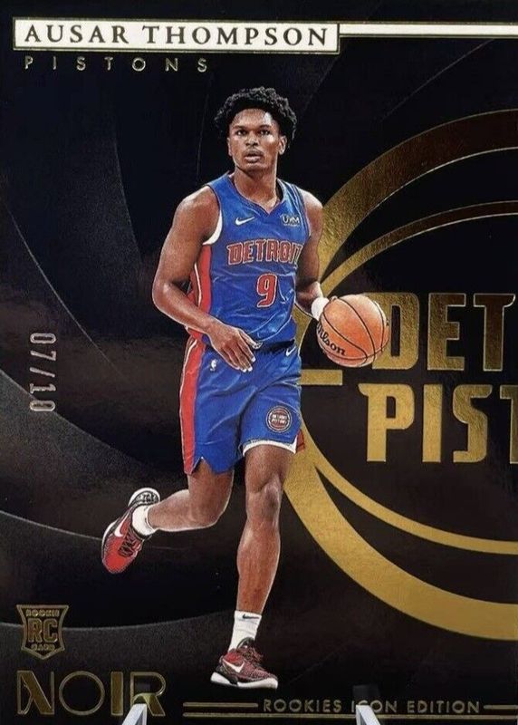 This card is 1 of 25 Ausar Thompson's card variations in the 2023 Noir set being tracked by Sports Card Investor, including Rookies Association Edition /99, Rookies Icon Edition /99, Feature Length /25, Rookies Metal Frame City Edition /25, and Rookies Association Edition - Holo Silver /49.