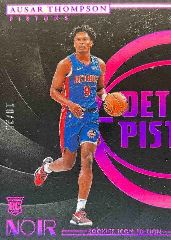 This card is 1 of 25 Ausar Thompson's card variations in the 2023 Noir set being tracked by Sports Card Investor, including Rookies Association Edition /99, Rookies Icon Edition /99, Feature Length /25, Rookies Metal Frame City Edition /25, and Rookies Association Edition - Holo Silver /49.
