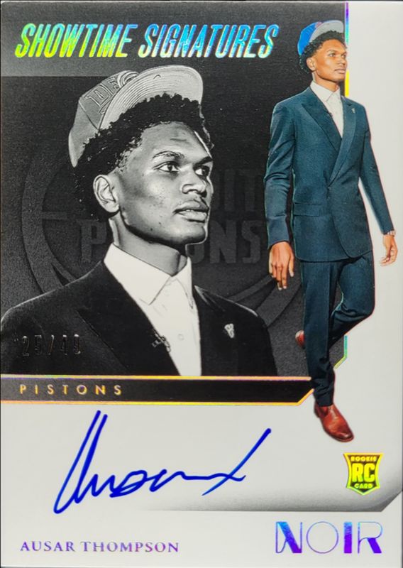 The Ausar Thompson 2023 Noir #STS-AST Showtime Signatures /99 Rookie card is 1 of 84 Ausar Thompson's card variations in the 2023 Noir set being tracked by Sports Card Investor, including #352 Base /99, #312 Base /99, #239 Base /99, #183 Base /99, and #153 Base /99.