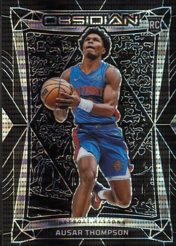 The Ausar Thompson 2023 Obsidian #58 Electric Etch International Rookie card in Raw condition has not changed in price in the last 30 days and was last sold for $4.00 .