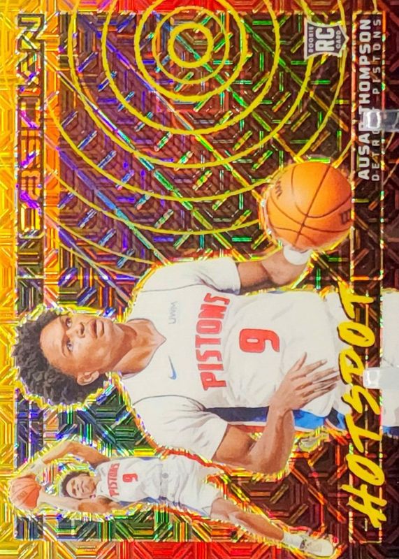 The Ausar Thompson 2023 Obsidian #7 Hotspot - Electric Etch Molten Mojo /10 Rookie card in Raw condition has not changed in price in the last 30 days and was last sold for $75.00 .