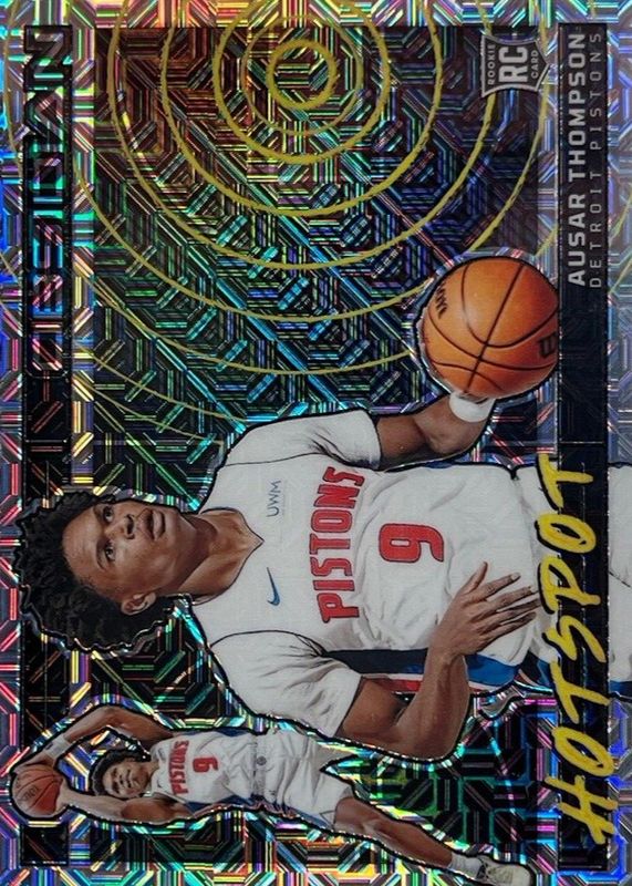 The Ausar Thompson 2023 Obsidian #7 Hotspot - Electric Etch Vibrant Mojo /1 Rookie card in Raw condition has not changed in price in the last 30 days and was last sold for $499.00 .