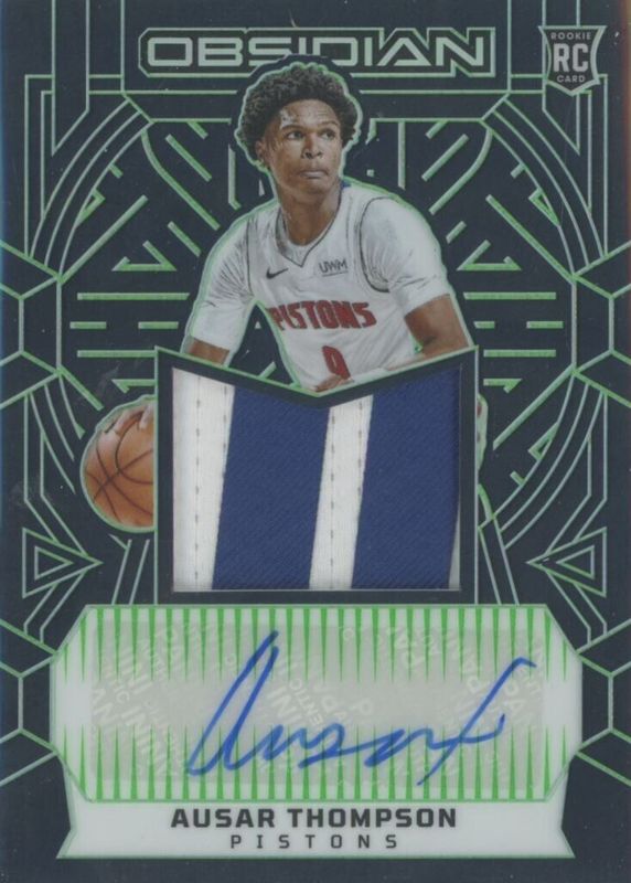 The Ausar Thompson 2023 Obsidian #220 Rookie Jersey Autographs - Electric Etch Green /25 card in Raw condition has not changed in price in the last 30 days and was last sold for $52.50 .