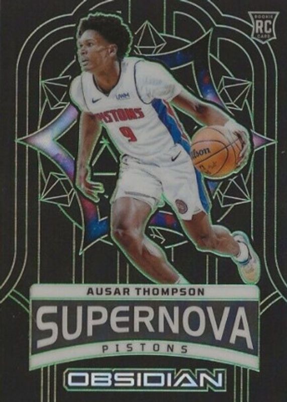 AUSAR THOMPSON 2023-24 OBSIDIAN SUPERNOVA ROOKIE GREEN PISTONS RC /25