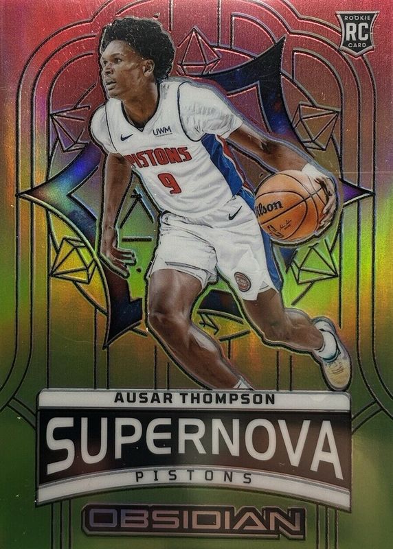 The Ausar Thompson 2023 Obsidian #1 Supernova - Electric Etch Reggae Flood /60 Rookie card in Raw condition has not changed in price in the last 30 days and was last sold for $19.99 .