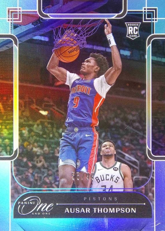 This card is 1 of 46 Ausar Thompson's card variations in the 2023 One and One set being tracked by Sports Card Investor, including Blue /35, Purple /25, Red /15, Gold /10, and White FOTL /7.