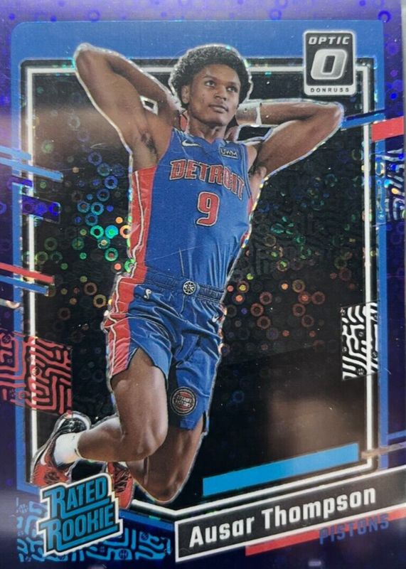 The Ausar Thompson 2023 Optic #235 Fast Break Purple /99 Rookie card in Raw condition has not changed in price in the last 30 days and was last sold for $3.25 .