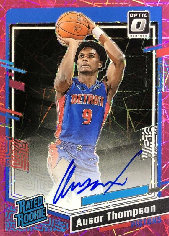 2023-24 Optic Ausar Thompson Pistons Rated Rookie Pink Velocity Auto Prizm #/79