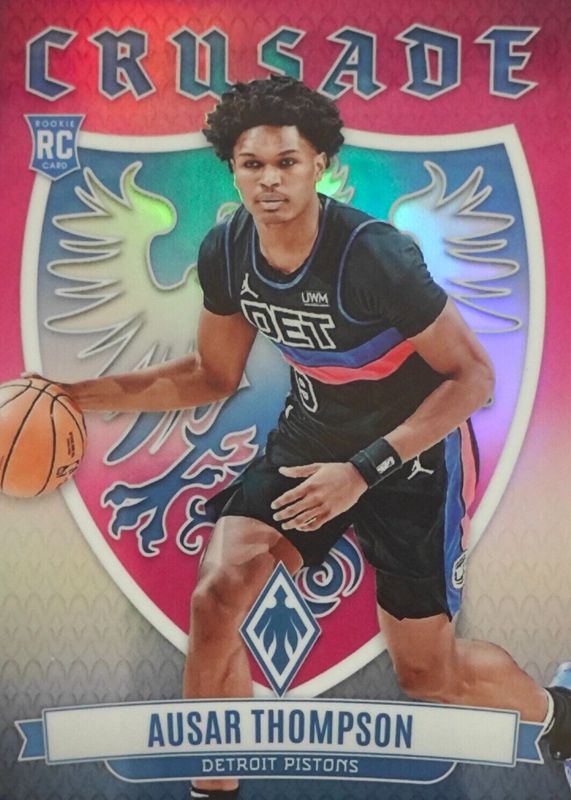The Ausar Thompson 2023 Phoenix #4 Crusade - Pink /99 Rookie card in Raw condition has not changed in price in the last 30 days and was last sold for $3.00 .