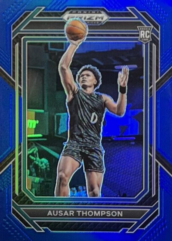 The Ausar Thompson 2023 Prizm Draft Picks #17 Blue /199 Rookie card in Raw condition has not changed in price in the last 30 days and was last sold for $4.00 .
