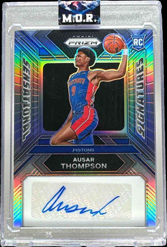 The Ausar Thompson 2023 Prizm #SS-AT Sensational Signatures - Silver Rookie card is 1 of 117 Ausar Thompson's card variations in the 2023 Prizm set being tracked by Sports Card Investor, including #178 Base, #178b Base, #178 Blue Wave, #178 Choice Blue Yellow Green, and #178 Fast Break.