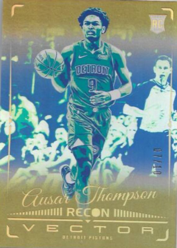 The Ausar Thompson 2023 Recon #4 Vector - Gold /10 Rookie card in Raw condition has not changed in price in the last 30 days and was last sold for $55.00 .