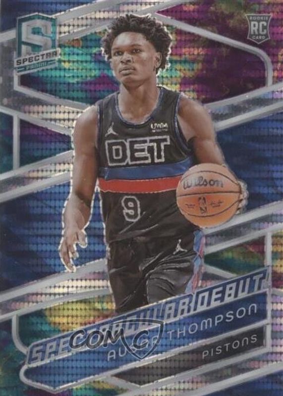 The Ausar Thompson 2023 Spectra #196 Spectacular Debut - Celestial /125 Rookie card in Raw condition has not changed in price in the last 30 days and was last sold for $4.55 .