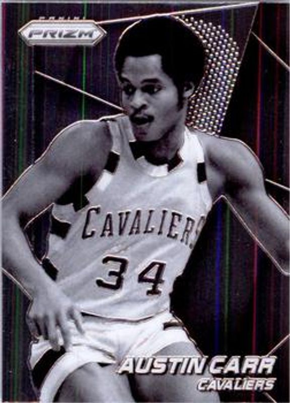 The Austin Carr 2014 Prizm #250 Base card is 1 of 18 Austin Carr's card variations in the 2014 Prizm set being tracked by Sports Card Investor, including Blue Green Mosaic, Blue Mojo, Blue Wave, Green, and Red White Blue Pulsar.