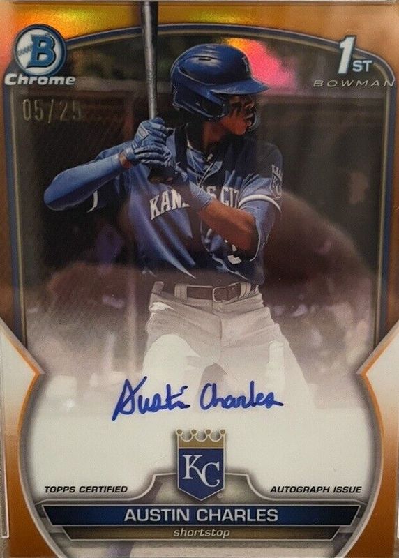 Auctions Ending Soon for Austin Charles 2023 Bowman #CPA-AC Chrome Prospect Auto - Orange Refractor /25 (1st) RAW