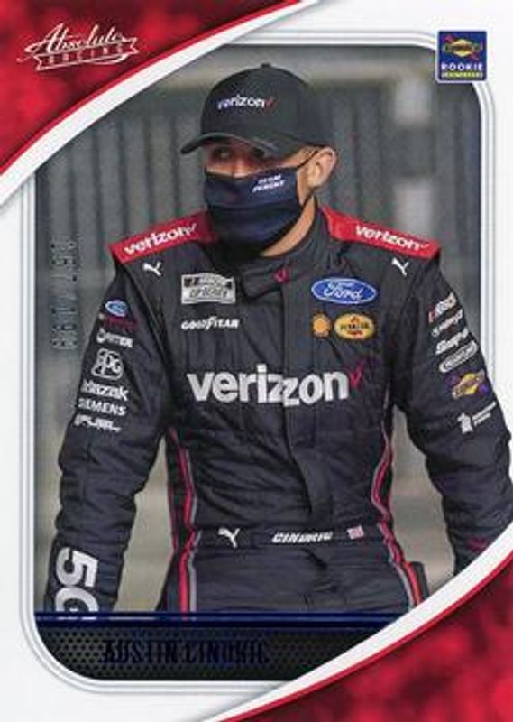 The Austin Cindric 2021 Chronicles NASCAR #7 Absolute - Blue /199 Rookie card is 1 of 83 Austin Cindric's card variations in the 2021 Chronicles NASCAR set being tracked by Sports Card Investor, including Base, Blue /199, Red /99, Purple /25, and Gold /10.