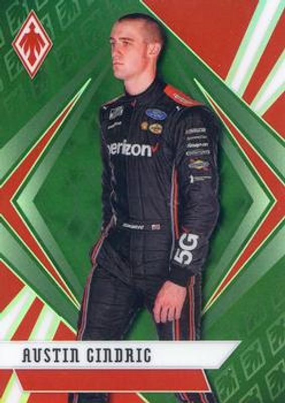 The Austin Cindric 2021 Chronicles NASCAR #1 Phoenix - Green Rookie card is 1 of 83 Austin Cindric's card variations in the 2021 Chronicles NASCAR set being tracked by Sports Card Investor, including Base, Blue /199, Red /99, Purple /25, and Gold /10.