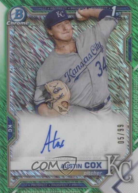 Austin Cox 2021 Bowman #CPA-AC Chrome Prospect Auto - Green Shimmer Refractor /99 (1st) RAW Price Guide