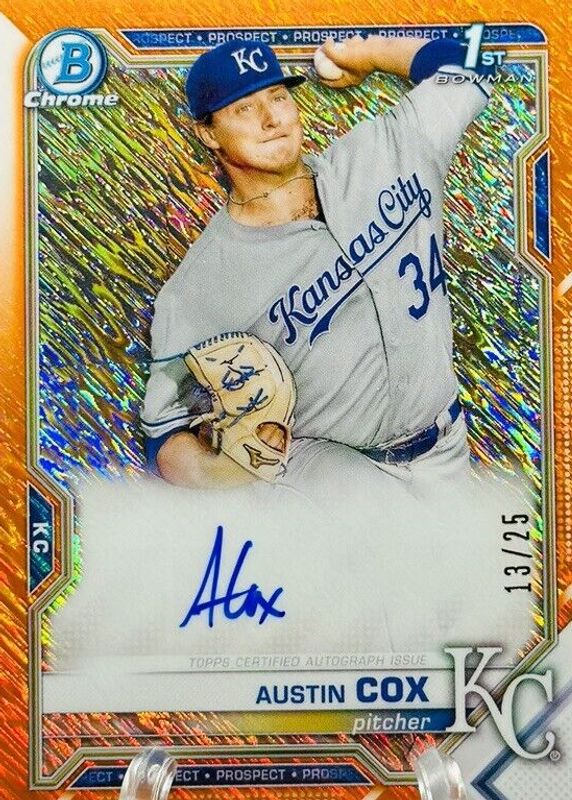 Austin Cox 2021 Bowman #CPA-AC Chrome Prospect Auto - Orange Refractor /25 (1st) RAW Price Guide