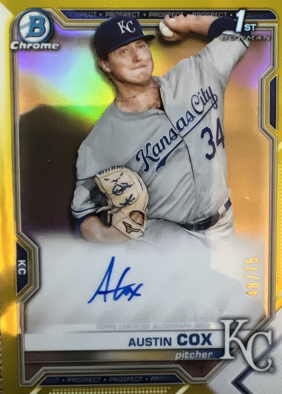 2021 Bowman Chrome 1st Prospect Auto AUSTIN COX Yellow Refractor Royals 4/75