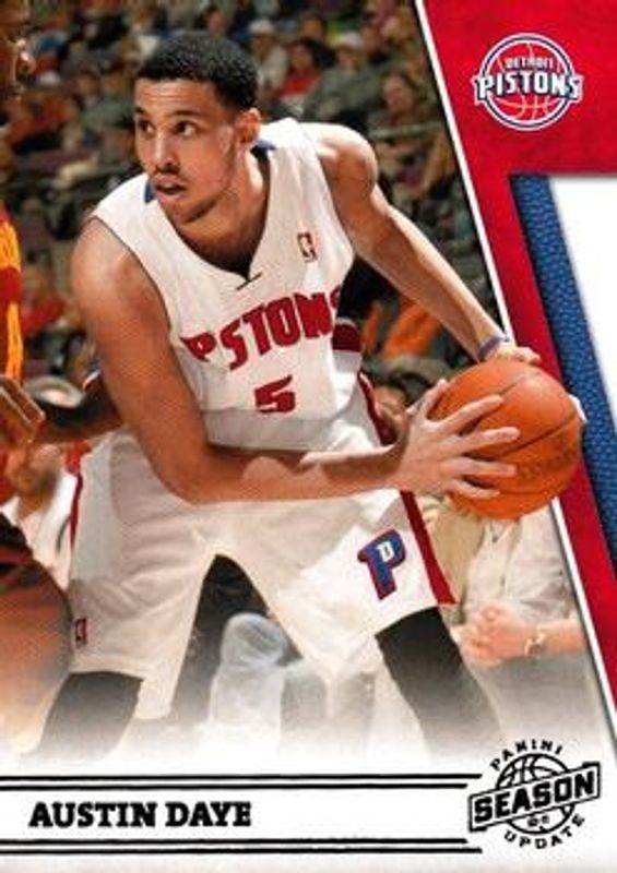 The Austin Daye 2010 Season Update #46 Base card is 1 of 5 Austin Daye's card variations in the 2010 Season Update set being tracked by Sports Card Investor, including Silver /99, Gold /24, Platinum /1, and Signatures /199.