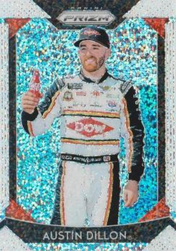 The Austin Dillon 2019 Prizm NASCAR #3a White Sparkles (Promo) card is 1 of 62 Austin Dillon's card variations in the 2019 Prizm NASCAR set being tracked by Sports Card Investor, including #3a Base, #3b Base, #78 Base, #3a Camo, and #3b Camo.