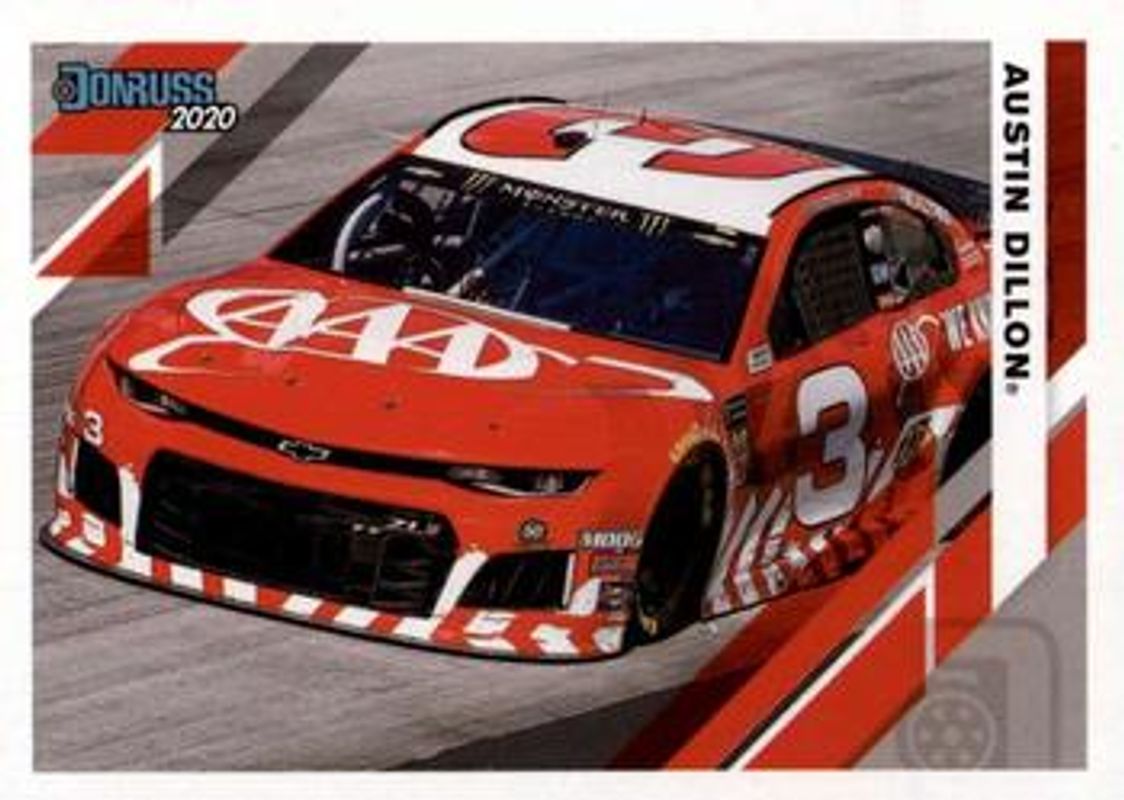The Austin Dillon 2020 Donruss NASCAR #111 Base card is 1 of 130 Austin Dillon's card variations in the 2020 Donruss NASCAR set being tracked by Sports Card Investor, including #168 Base, #191 Base, #25 Base, #3 Base, and #3 Carolina Blue.